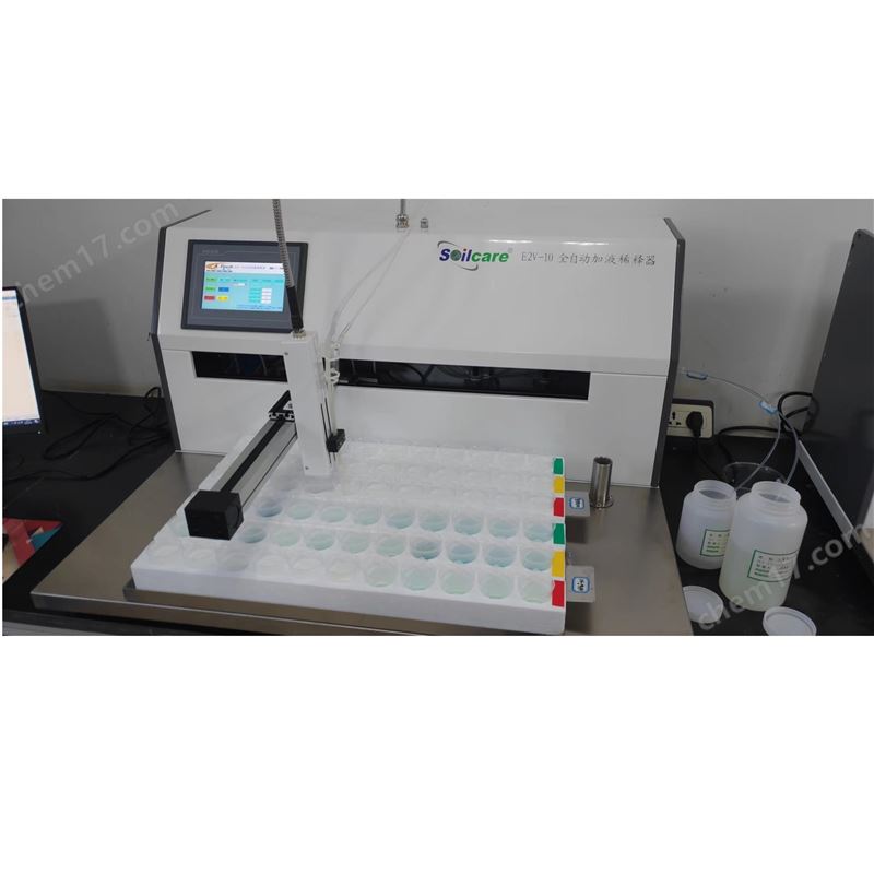 自动加液稀释器在土壤养分测定中,除了加液和稀释之外,还有需要加入两种溶液进行稀释,如土壤磷素的测定中,既需要将土壤浸提液用纯水稀释,又需要加入显色剂,为这了提高效率,该设备配备了四台集加液与稀释于一体的加液稀释器,包括土壤有效磷、钾、钙、镁测定、硫的测定、铵态氮测定、硝态氮测定中的稀释加液。它实际上是由一组加液器和一组稀释器集成在一个压杆上。