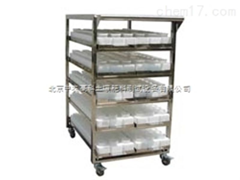 在测定过程中,量样、加浸提剂、加显色剂、比色等过程往往不在同一地方进行,为了方便移动,该套设备中还配备了五台样品车。是由铝合金制成的,共有5层,每层可放置2个样品杯托架,所以,每个样品车可放置10个样品杯托架。的顶部是一个平台,可将样品托架及样品杯置于样品车上,进行加液、稀释和测定。因此,在实验室设计时,需留出一定的空间,能使样品车在各实验台间通过。试验停止时,可将样品杯洗干净,倒扣在样品托盘上,将样品车置于实验台下边,以节约实验室的空间。